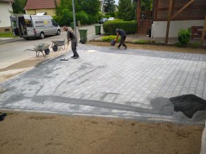 Komplettauftrag 14.06.2019 – Hier in Armsheim führten wir die Erd- und Kanalarbeiten für ein MASSA-Fertighaus mit Keller aus. Danach übernahmen wir die Geländeabstützung und die Pflasterarbeiten.